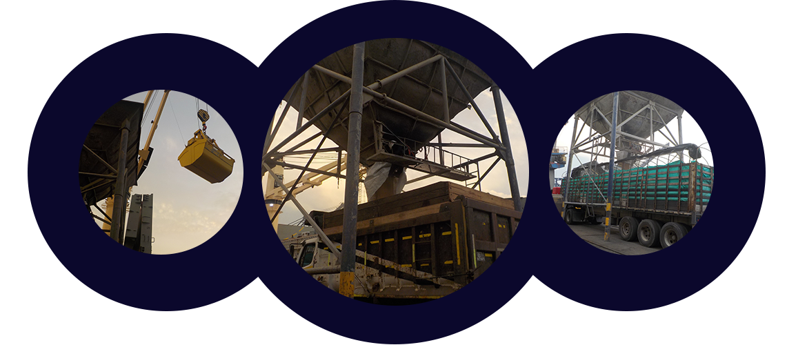 De 6 metros x 6 metros parte superior, de 0,60 metros x 0,60 metros parte inferior x 2.7 metros de altura, el dosificador de 0,60 metros x 0,60 metros boca inferior x 0,50 metros de altura . La altura del suelo a la boca inferior del dosificador es de 4.20 metros, y la altura total de la tolva del suelo a la parte superior es de 7.2 metros, las patas de 7 metros de longitud, pasillo para tolvero y escalera de acceso.