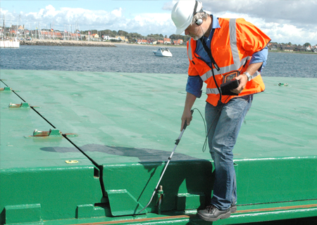 Realizamos prueba ultrasónica para comprobar la condición de estanqueidad de las tapas de bodega.