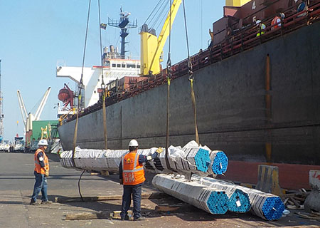 Descargamos y cargamos buques de carga de proyecto/sobredimensionada con los más altos estándares de seguridad y productividad, desde la desestiba, porteo, almacenamiento y despacho de la carga cuando la operación es de descargue y en la operación de cargue, desde el recibo en puerto, almacenamiento, porteo, estiba y trinca a bordo.